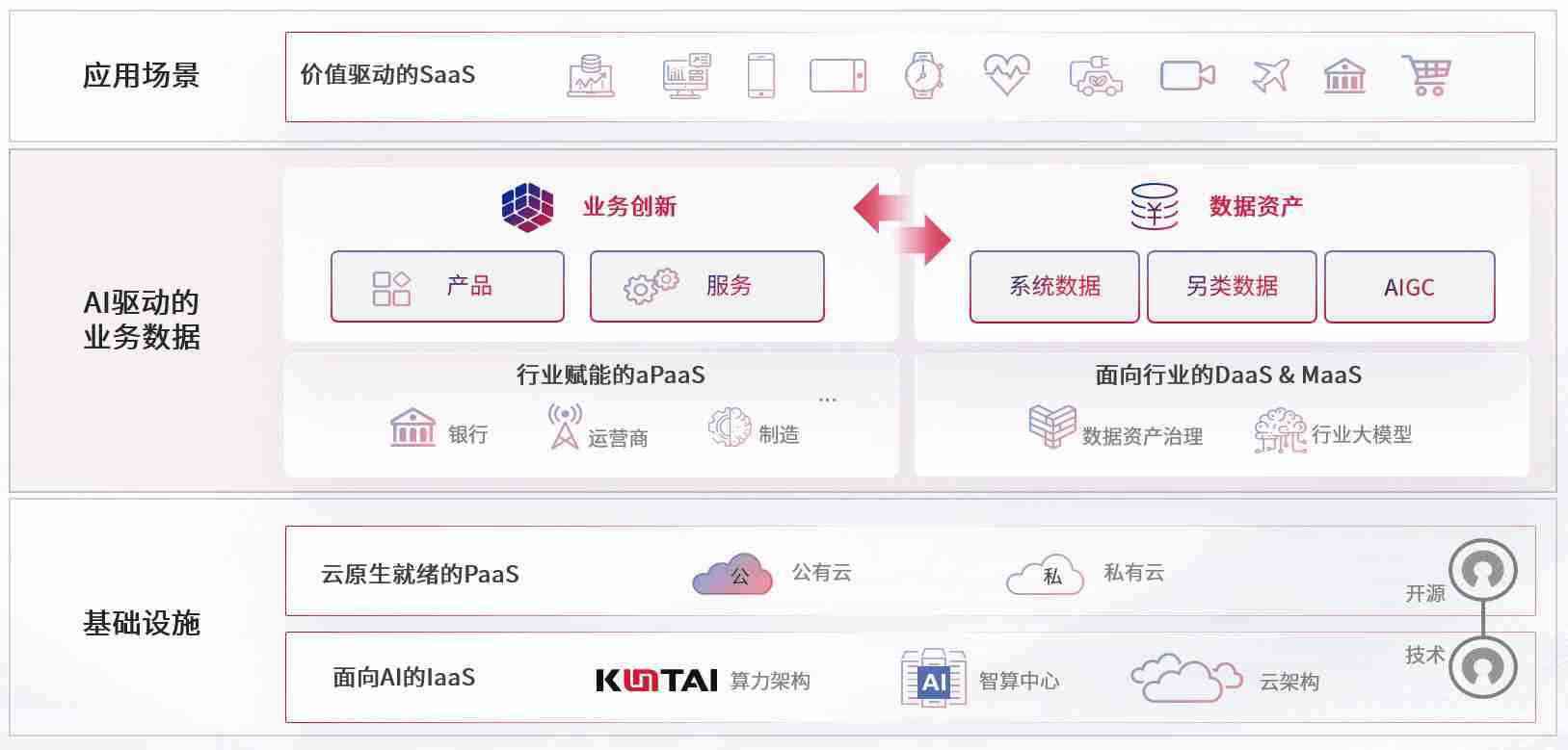 数字时代,,围绕企业数字化转型的关键要素,,988PAY数码开创性的提出数云融合战略和技术体系框架,,,着力在云原生、、、、数字原生、、、、AI原生和信创产业上架构产品和服务能力,,,,为处在不同数字化转型阶段的快消零售、、汽车、、金融、、医疗、、、、政企、、、教育、、运营商等行业客户提供泛在的敏捷IT能力和融合的数据驱动能力,,,构建跨界融合创新的数字业务场景和新业务模式,,,,助力企业级客户建立面向未来的核心能力和竞争优势,,全面推动社会的数字化、、、、智能化转型升级。。。